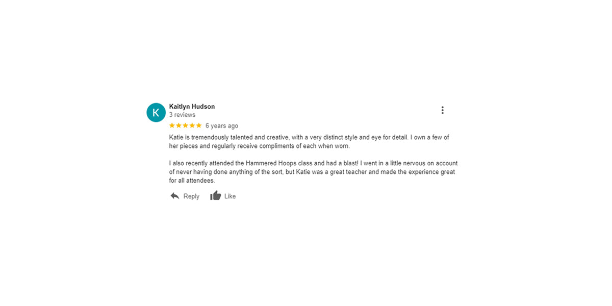 Katie's beautiful jewelry can be found on-site, as can the artist herself.