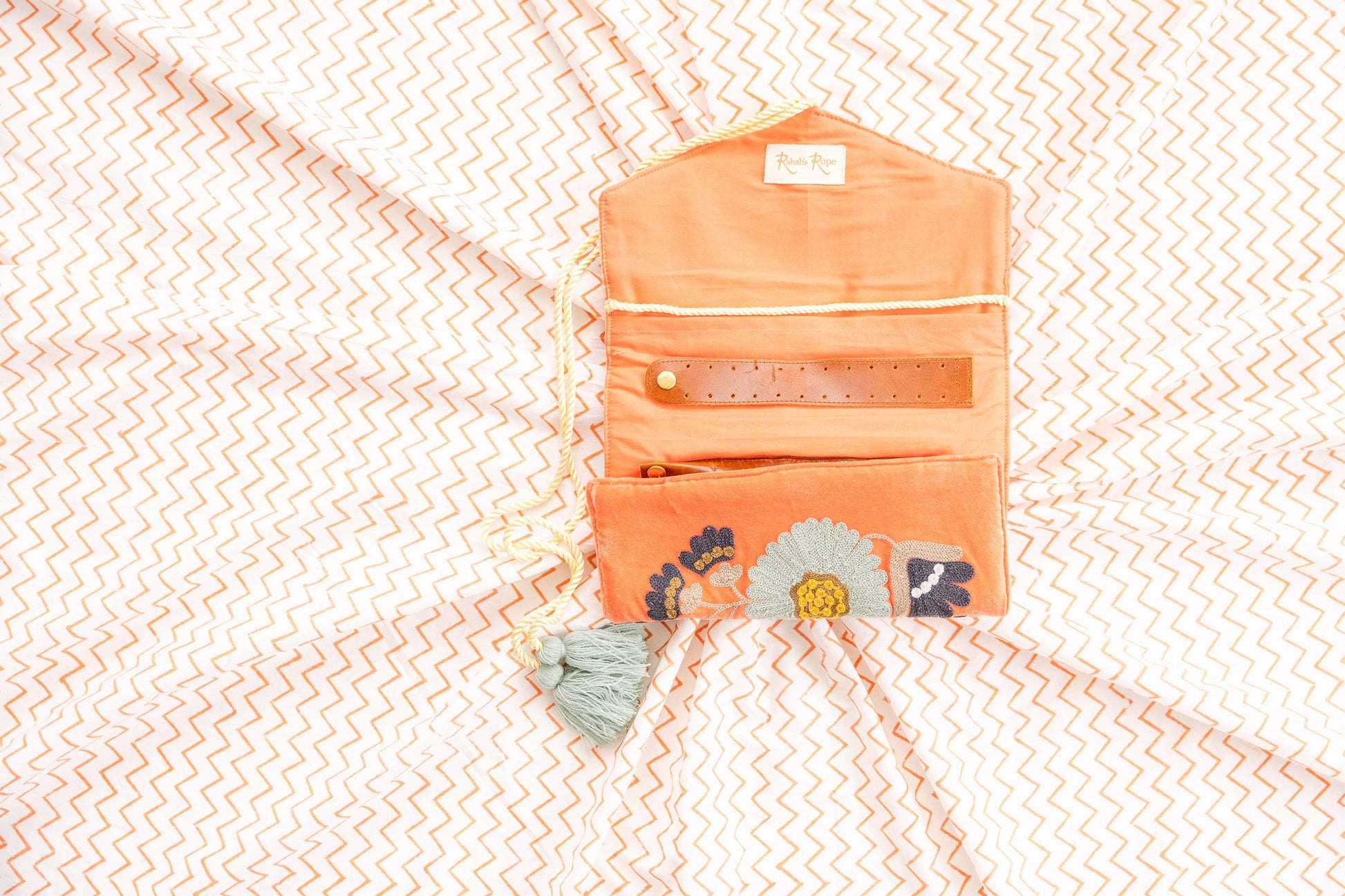 Embroidered Velvet Jewelry Organizer - Coral Botanical