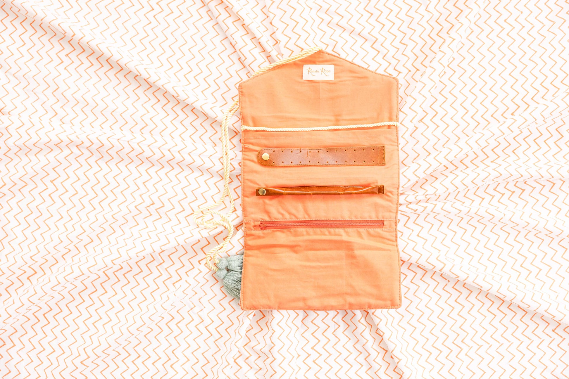 Featuring a zippered pouch, spacious pocket, a dedicated ring roll, and an earring panel that holds up to 12 pairs of earrings, it's designed for convenience on the go. Its compact folding design, coupled with a decorative tassel, adds a touch of style and elegance to your travel essentials.