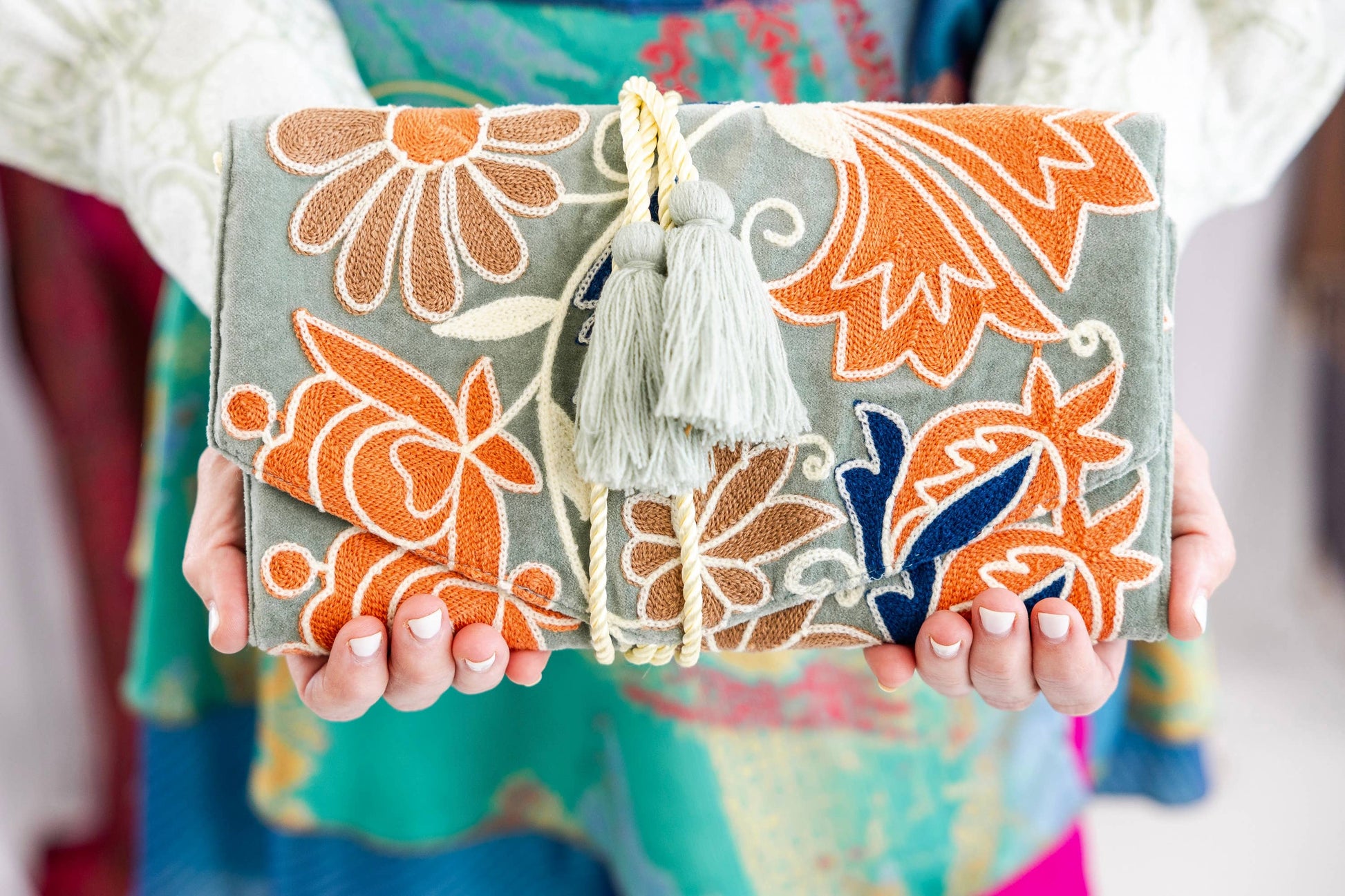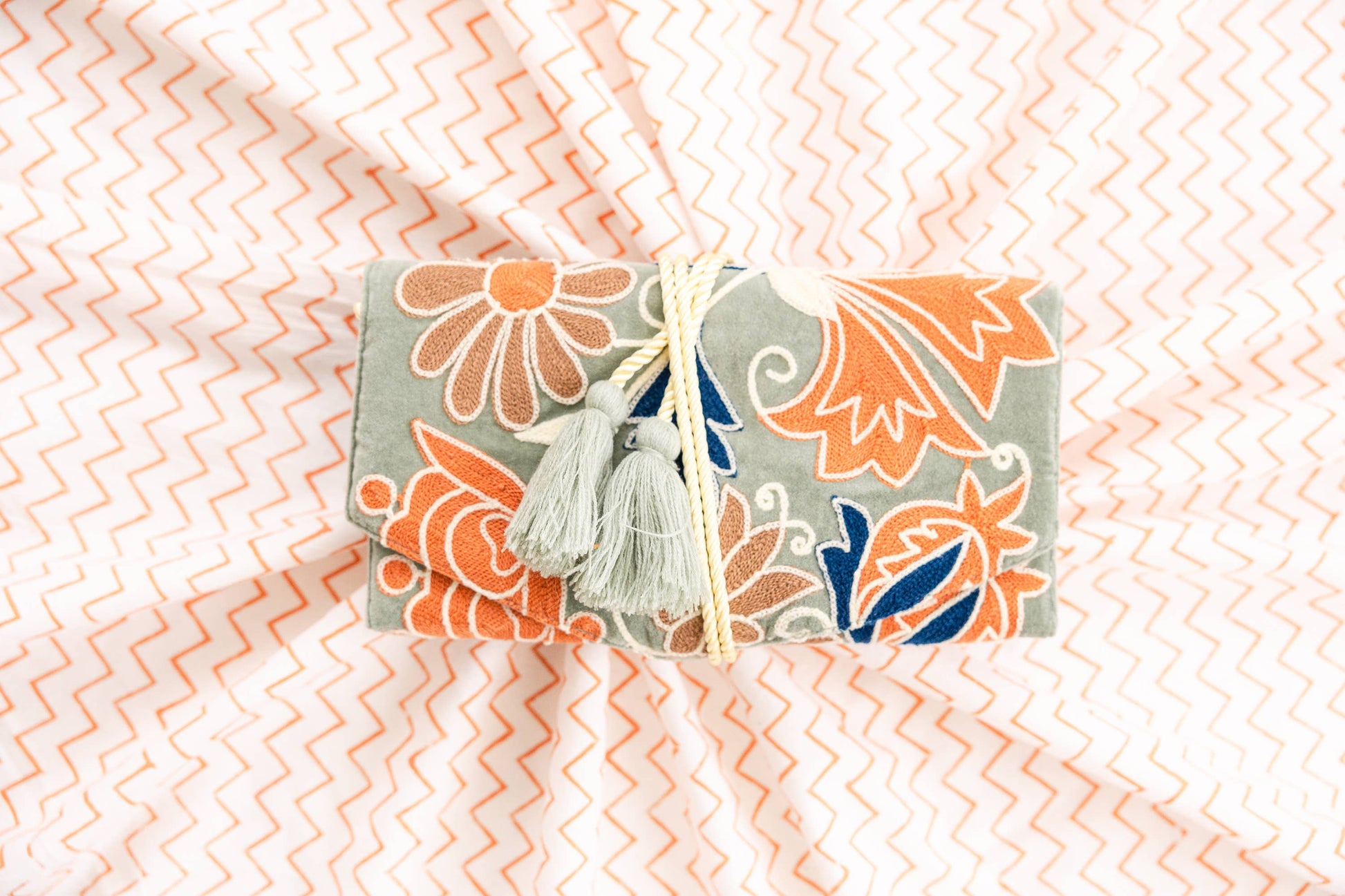 Embroidered Velvet Jewelry Organizer - Mint Botanical